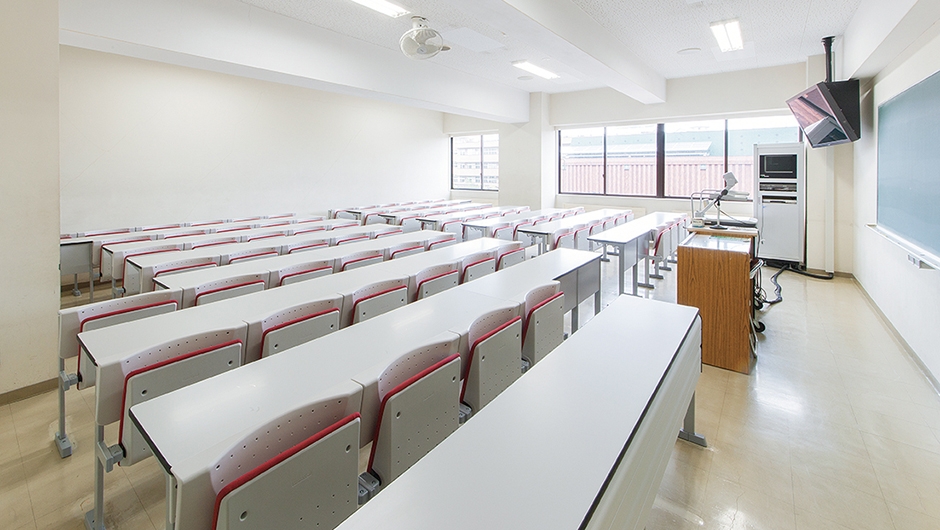 東北福祉大学は、日本の福祉三大学の一つに数えられている伝統校。福祉系の国家資格の合格者を多く輩出している実績もあることから、北海道・東北・甲信越など幅広い地域より学生が入学しています。学習環境のさらなる充実を図るため、家具の入れ替えが行なわれました。教室は、限りあるスペースで席数を確保するため、講義デスク・イスの1人当りの幅を560mmとしています。