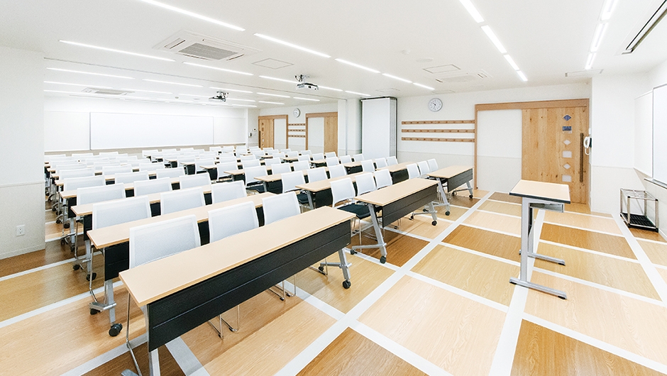 1階 教室2・3/イス:ティーポ特注品、デスク:CTZM、教卓:S-30