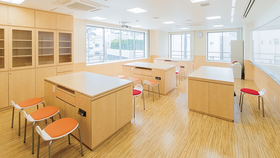 4階 医学実習室/回転イス、丸イス、デスク、ワゴン、診察台、オムツ交換台