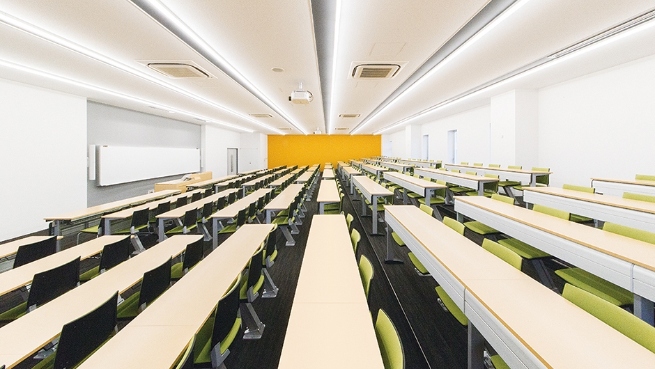 3階 FLOSホール/講義デスク・イス:SCF-5105、移動イス:SCM-5105、移動デスク:CTN4 総席数250席、教卓:S-3型特注品