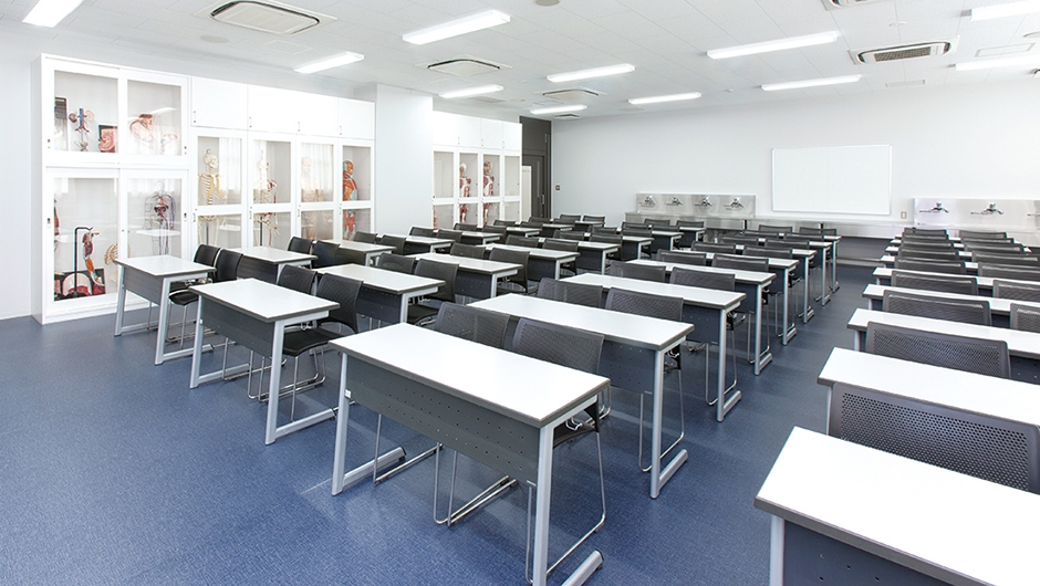 基礎医学実習室/イス:ルッシュ、デスク:SCM-300、棚特注品