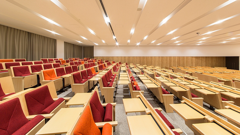 中部大学開学50周年を記念して建設され、2015年4月オープンしました。建学の精神「「不言実行、あてになる人間」への思いが込められ、学生が自ら学び、人間力を高める場となることを目指しています。1階アクティブホールは、授業だけでなく講演会やシンポジウムなどが開催できる多目的ホールとして利用されます。