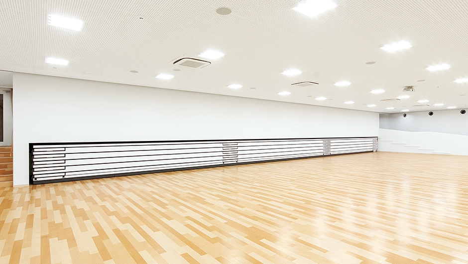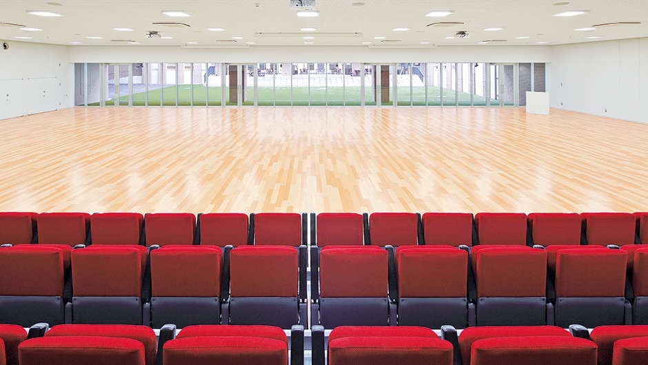 創立90周年記念事業の一環として建設された新校舎。ホール、普通教室、特別教室、体育館等で構成されています。1階のアクティビティホールには、座席を手動で起倒させる移動観覧席が設置され、講演会や説明会など様々な利用目的に合わせて柔軟に対応できる空間となっています。また、ホールに面して中庭を設置し、窓を開放して一体利用が可能です。
