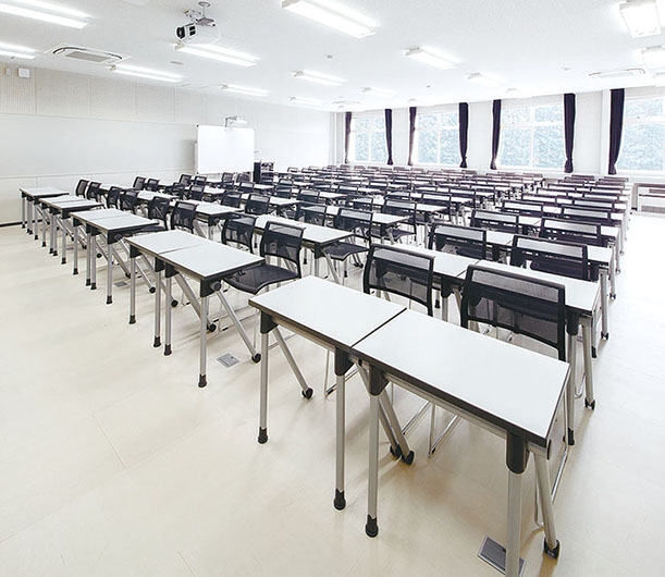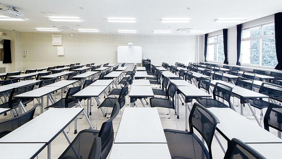 既存の教室をアクティブラーニングにも対応できるよう、キャスター付のデスクとスタッキングチェアに入れ替えがなされました。家具の可動性と収納性を高め、様々なスタイルのコミュニケーションを可能にしています。