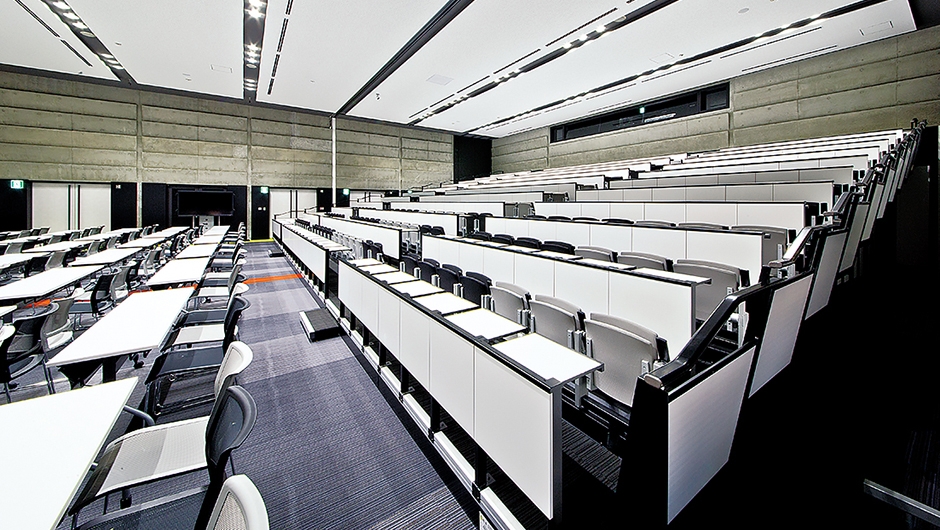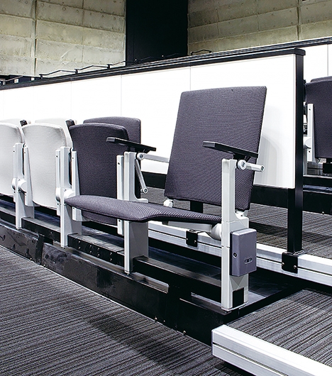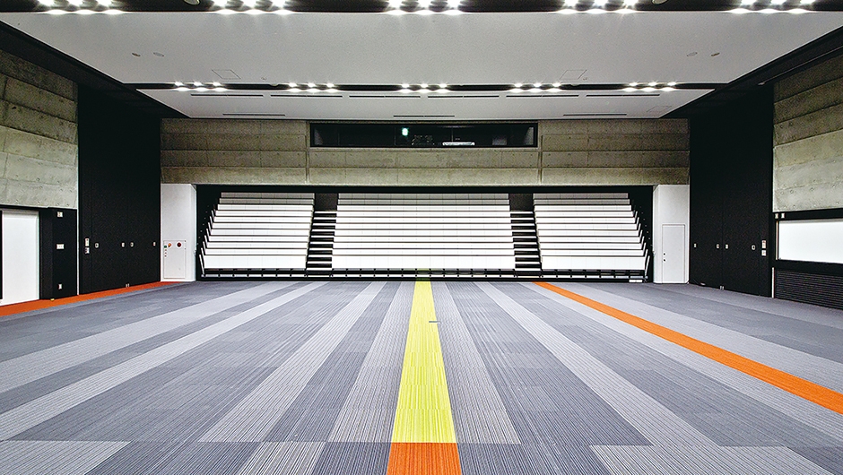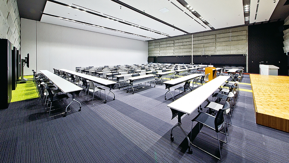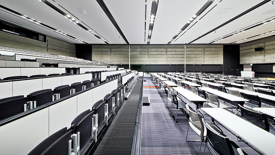 1階 大ホール〈1〉/移動観覧席(テレスコープスタンド):AHP-A8209-25NTA特注品 297席、イス:ティーポ、デスク:INTE