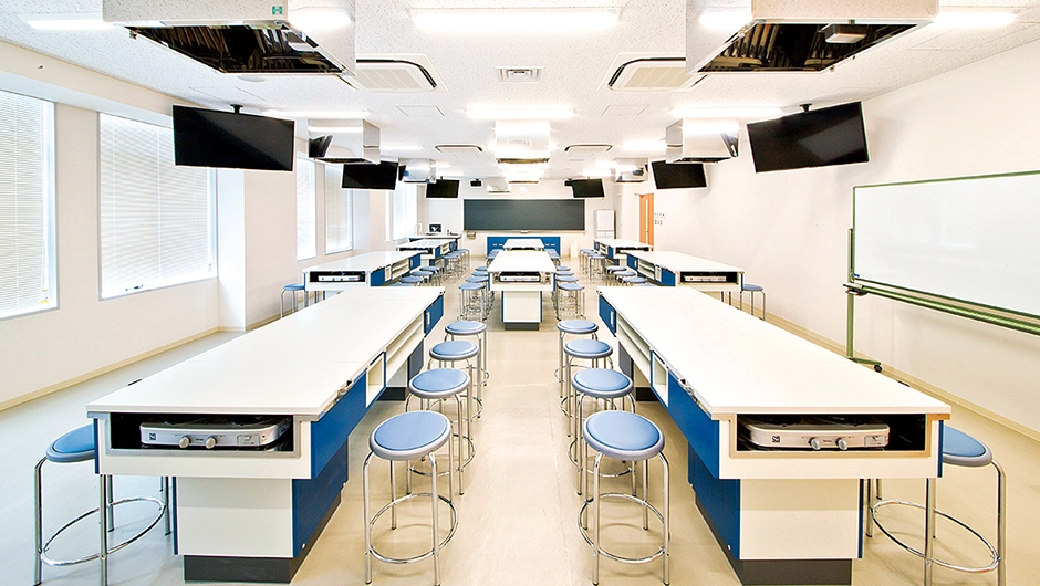 学校法人金城学院は、2009年に学院創立120周年を迎えました。その節目に、大学全体の教育環境を見直し整備するために金城学院キャンパスマスタープラン「KMP21」をスタート。そして2014年に、「KMP21」の中心となる第1フェーズの3施設が完成しました。その1つであるN2棟は、専門的な実践力を養うさまざまな場を備え、演習室、実習室、ピアノレッスン室や個人練習室、講義室などが入っています。
