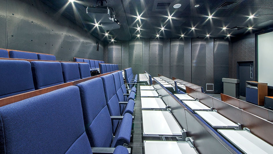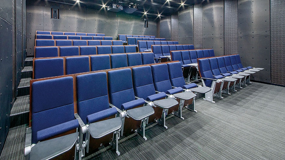 芸術やスポーツ文化の専門性を活かし地域活性化に貢献する人材の養成を目指す、芸術・スポーツ文化学科が新設され、それに合わせて、2015年に地域文化活動棟、2014年に第3体育館が新たに建設されました。地域文化活動棟のシアタールームは、最新の4Kシアター機能を持った施設となっています。座席には筆記ができるようテーブルを装備しており、映像関連の授業などに活用されます。