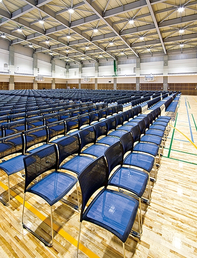 専門学校、高等学校と7園ある幼稚園グループを運営する学校法人 博多学園は、創立70周年を機に70種におよぶブランディングプロジェクトを進めています。その中核となるのが新キャンパスの整備です。2012年4月に本館となる校舎を改修し、2014年1月には千早アリーナがオープンしました。