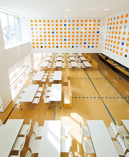 1階「スクールカフェテリアアンリ」/イス・ハイチェア:ティーポ、テーブル:DTN