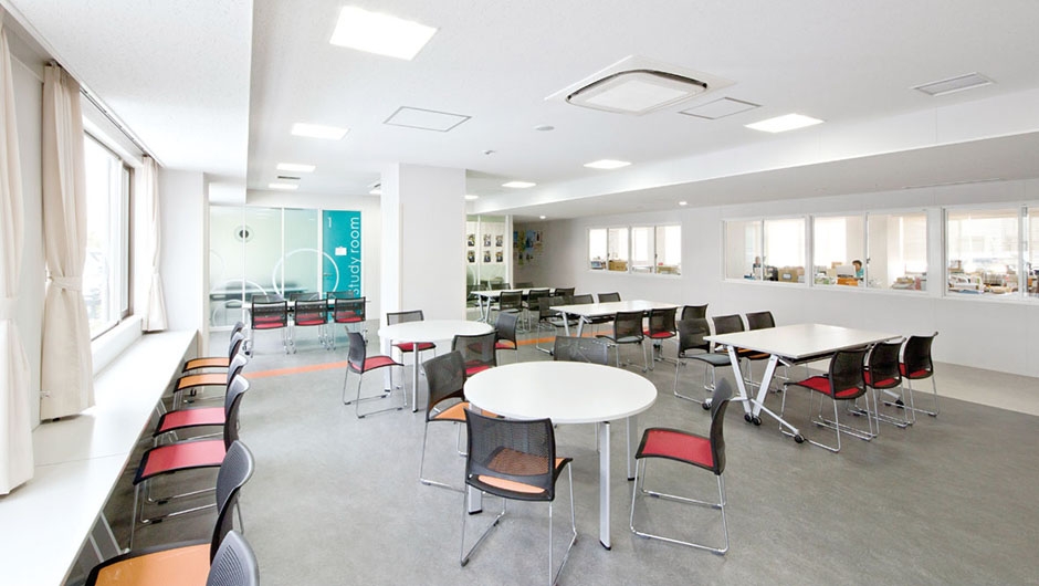 学校法人佐賀清和学園は、2014年の校舎移転に伴い新校舎を建設。 普通教室の机は学校独自の特徴を持たせるため、幕板に学園のマークをパンチング加工でデザインしています。学習スペースは職員室の正面にあるため、自習などの利用の他に相談に来た生徒とのコミュニケーションの場としても利用されています。