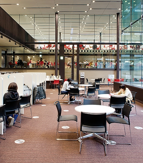 1F 学生ラウンジ/イス:ティーポ、テーブル:DT-TU特注品