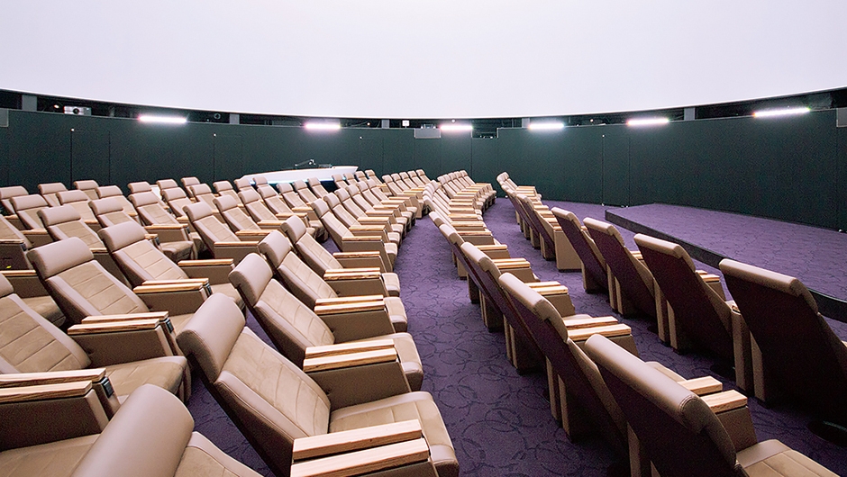 岡三証券グループは、創業90周年記念事業の一環として、創業地・三重県津市に津ビルを新築し、子どもたちの科学への関心を高め地域の科学教育に貢献する目的で、最上階にデジタルドームシアター「神楽洞夢」を開設しました。ドームは最新の天文データと上映システムを備え、迫力ある映像が再現できるほか、お客様への投資情報のプレゼンテーションにも使用されます。