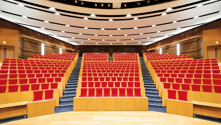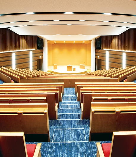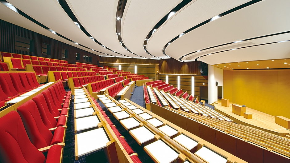 「清明ホール」/ホール客席:ATS-1341DR特注品 500席、演台:特注品