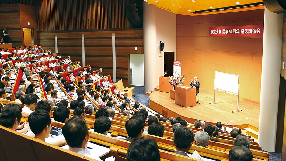 2014年に開学60周年を迎える中京大学は、名古屋キャンパス整備計画「C-EAST地区開発計画」として、新たに3棟を完成させました。そのうち新1号館は、学術ホールなどの共用施設、ラーニング・スクエアを備えた図書館や教室などの教育研究施設、食堂などの学生厚生施設が入る複合的な建物です。