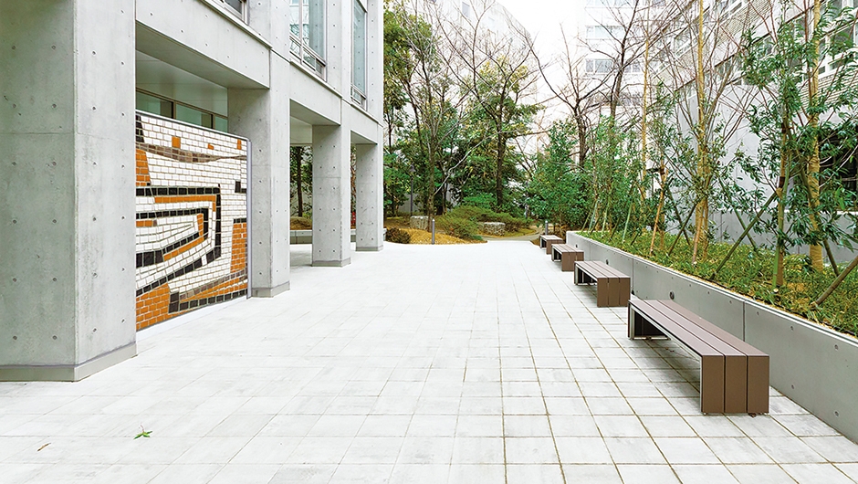 旧33号館(村野 藤吾 設計)のモザイクタイル壁画は、保管・移築され、以前の面影を残しています。