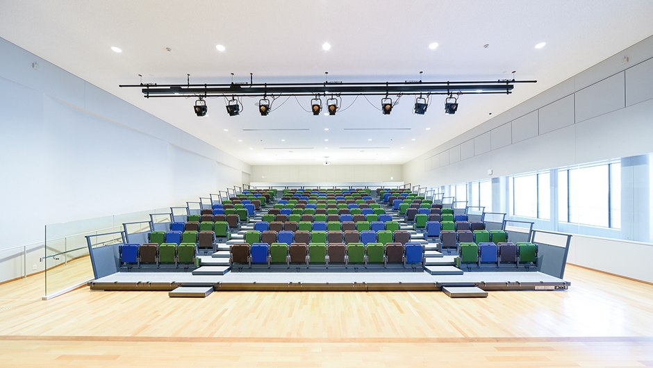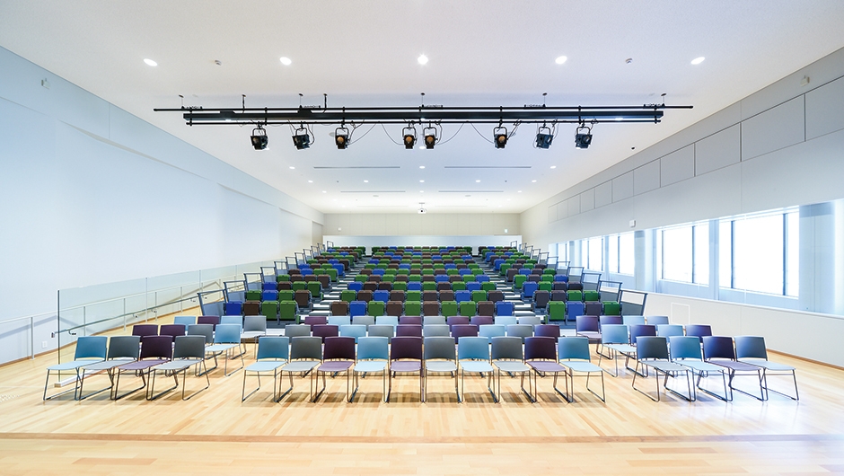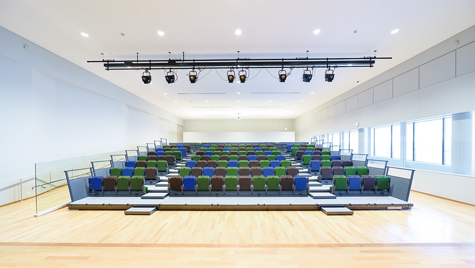 ノビノスホール/移動観覧席「テレスコープスタンド」:AHP-A8518-20P、可動イス:X50