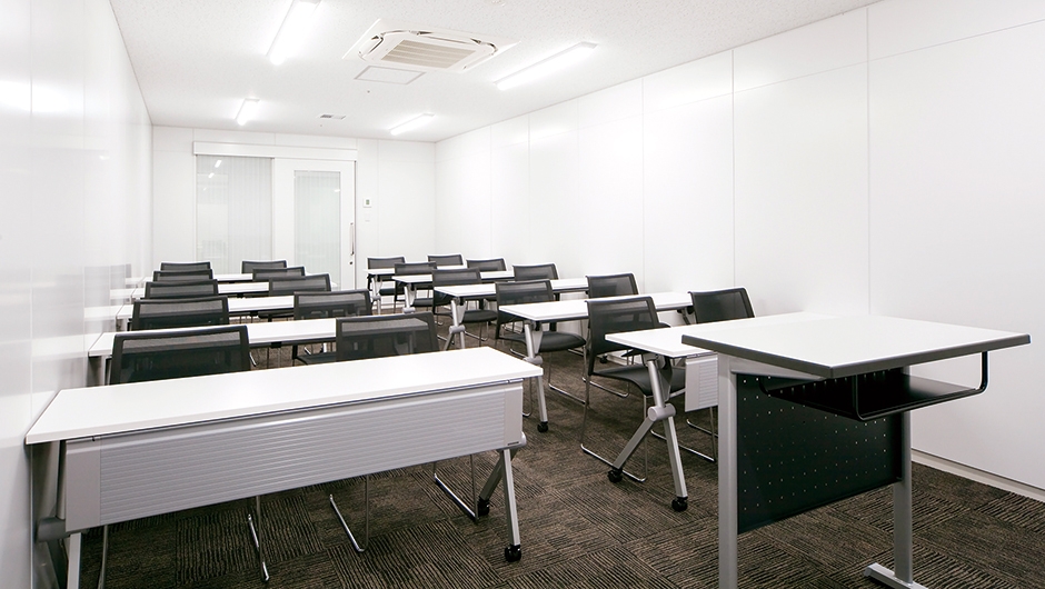 座学教室/イス:ティーポ、テーブル:フリプト、教卓:S-30、ホワイトボード:NG-SR