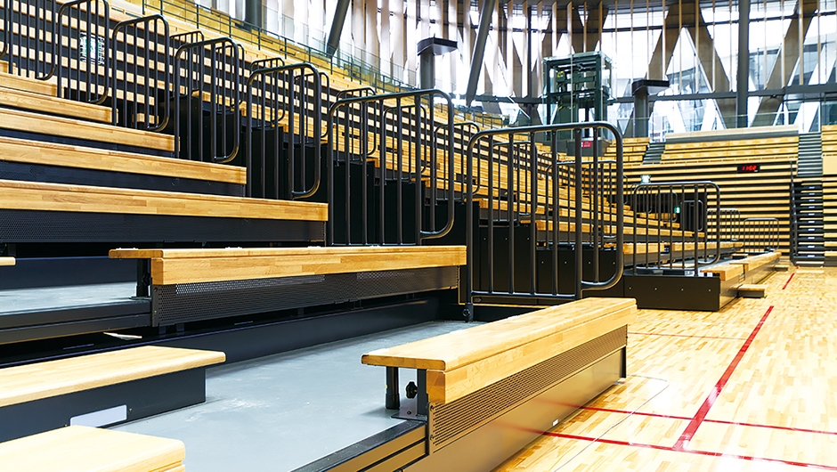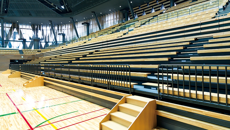 メインアリーナ/移動観覧席「テレスコープスタンド」:AHB-A5200特注品 2436席(総席数4012席)