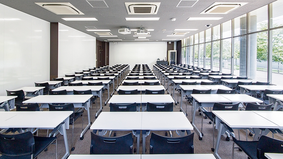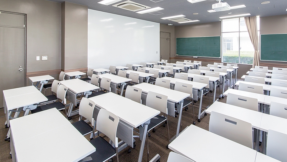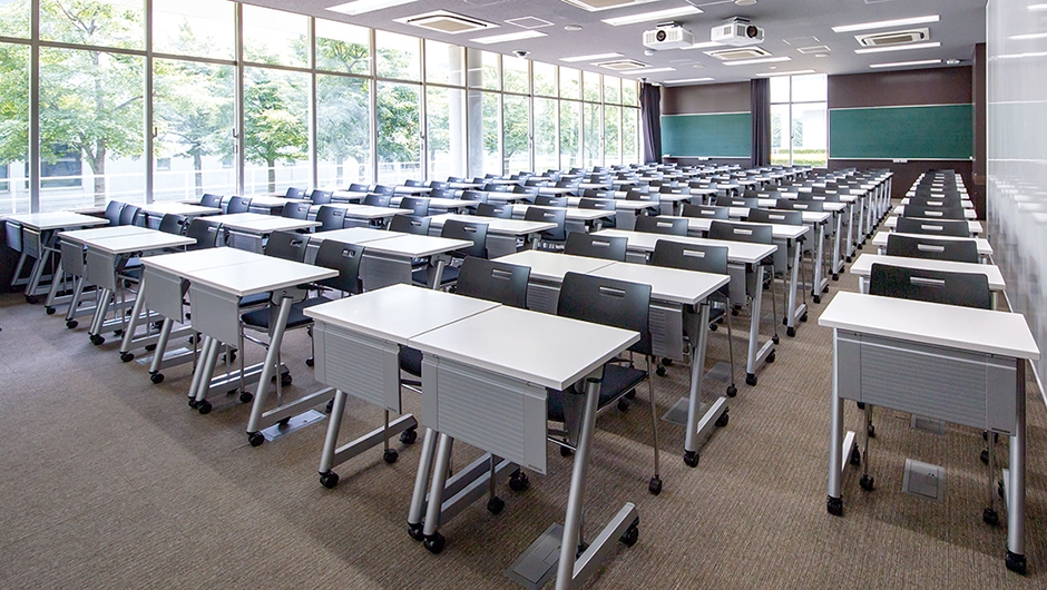 慶應義塾大学 湘南藤沢キャンパスでは、アクティブラーニング教室の充実を図るため、普通教室をアクティブラーニング教室へと改修しました。改修された教室は、他の教室とイメージを変えるため落ち着いた雰囲気の内装になっており、また壁面ホワイトボードにノートPCの画面を投影できるなど、プレゼンテーションをするのに適した教室となっています。限られたスペースの中でフレキシブルにレイアウト変更ができるよう、移動性に優れた家具が採用されています。