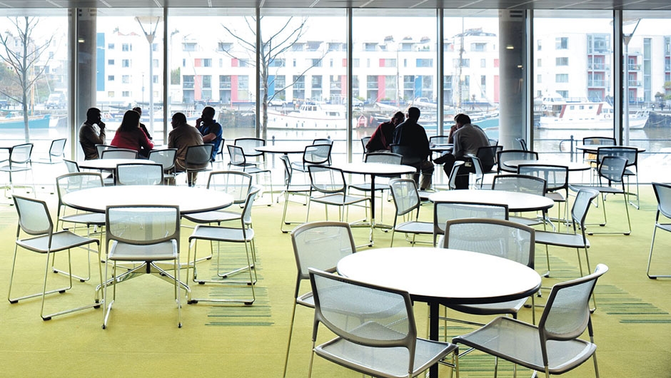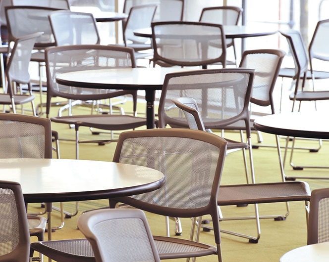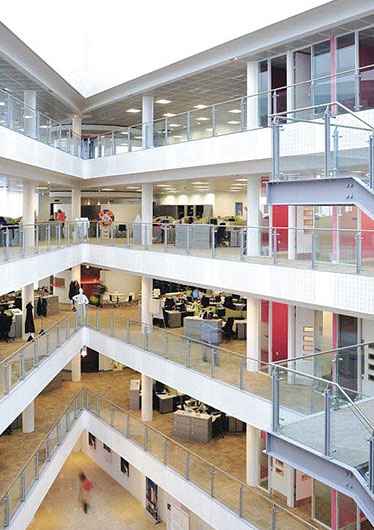 イギリスの大手金融会社HBOSがブリストルに新設したオフィスのカフェスペースにデイライトが採用されました。新オフィスのコンセプトは「省エネルギー化」と「環境保全」。デイライトの、部品交換が簡単に行える持続可能な設計や、分別処理により材料再生も可能な点が高く評価されました。開放的な明るい空間に、メッシュの透明感とスリムなデザインがマッチしています。