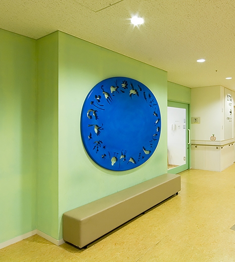 最新の医療設備に加えて、新しくなった院内には、“癒しの森”と表現されたゆとりの空間が各所に設けられています。十分な心のケアに配慮した空間づくりとして、アート作品の展示や待合の充実などが図られました。