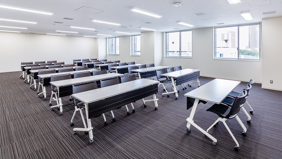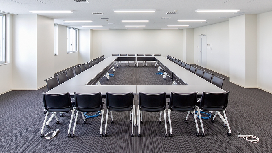 会議室には移動・収納性に優れたテーブル・イスが採用されており、多目的に活用することができます。