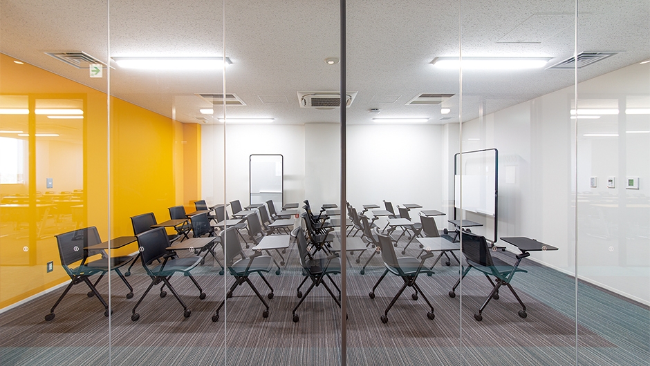 3階 大講義室/講義デスク・イス:ラッセ特注品、移動イス:SCM-4505/5105、移動デスク:SCM-5505