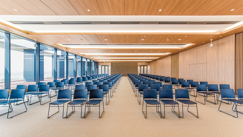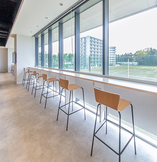 新講義棟には、学内最大となる744名(補助席含む)収容の大講義室やラーニングコモンズ、大幅に増える学生が利用する新たなカフェテリアなどが設置されており、さくらキャンパスのシンボル的な建物となります。
