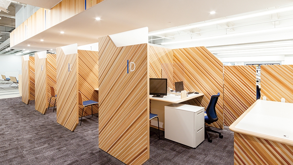 館内には、香川県産の杉柾目材を用いた造作家具が設置されており、明るく温かみのある空間となっています。そのほか、地中熱を利用した再生可能エネルギーを活用するなど、環境に配慮した施設となっています。
