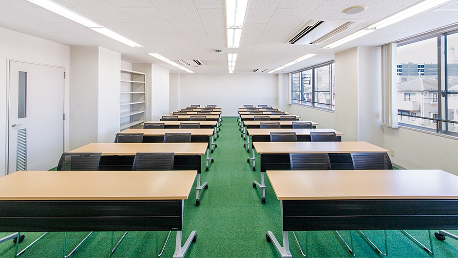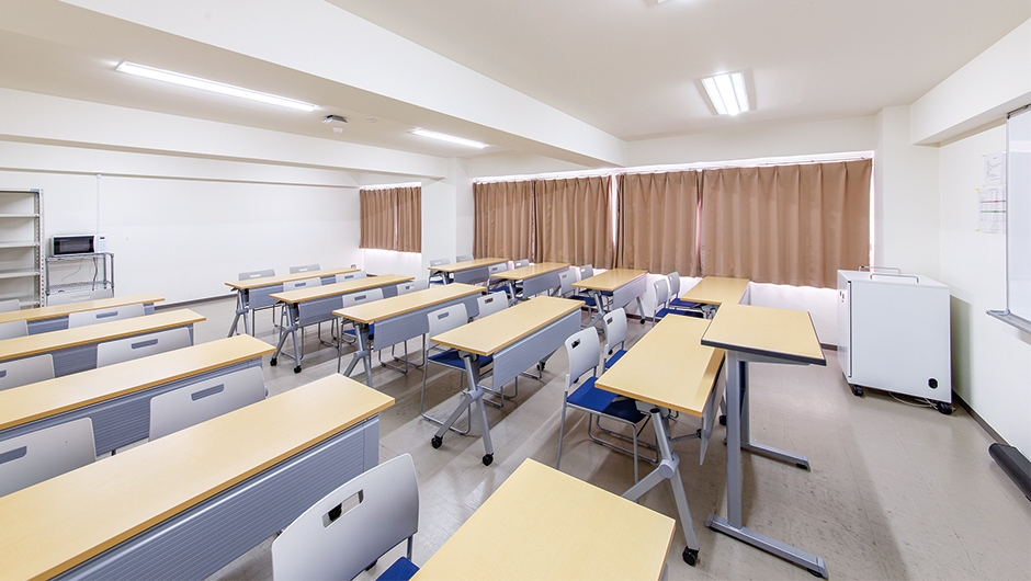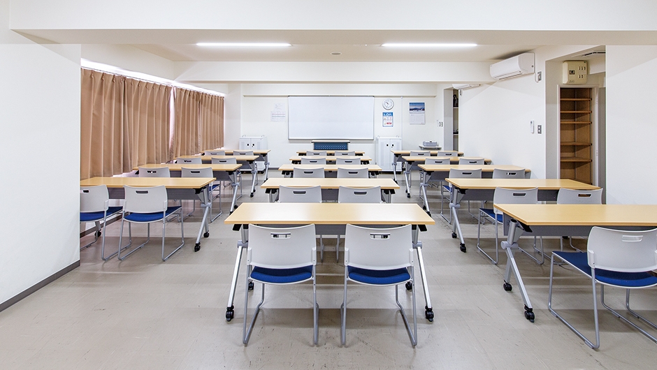 講義室の増設に伴い、学生寮だった部屋を改修して新たな講義室を新設したほか、老朽化した家具の入れ替えが実施されるなど、学習施設の整備が行われました。教室は英会話スクールでも併用されるため、移動性と収納性に優れたイス・デスクが採用されています。