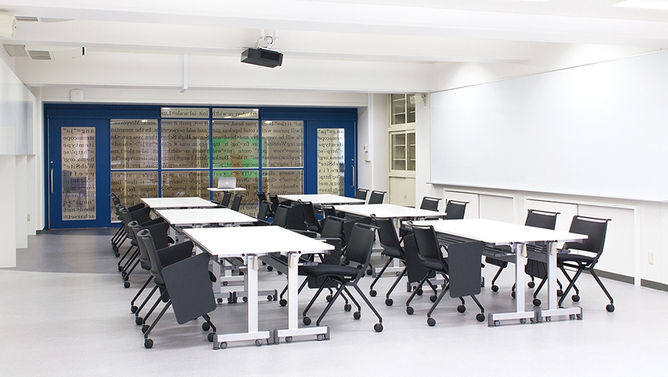 Play Labo/イス:ティーポ、テーブル:CTN4、ホワイトボード、サイン、内装改修(壁、床、ガラスパーティション、プロジェクター)
