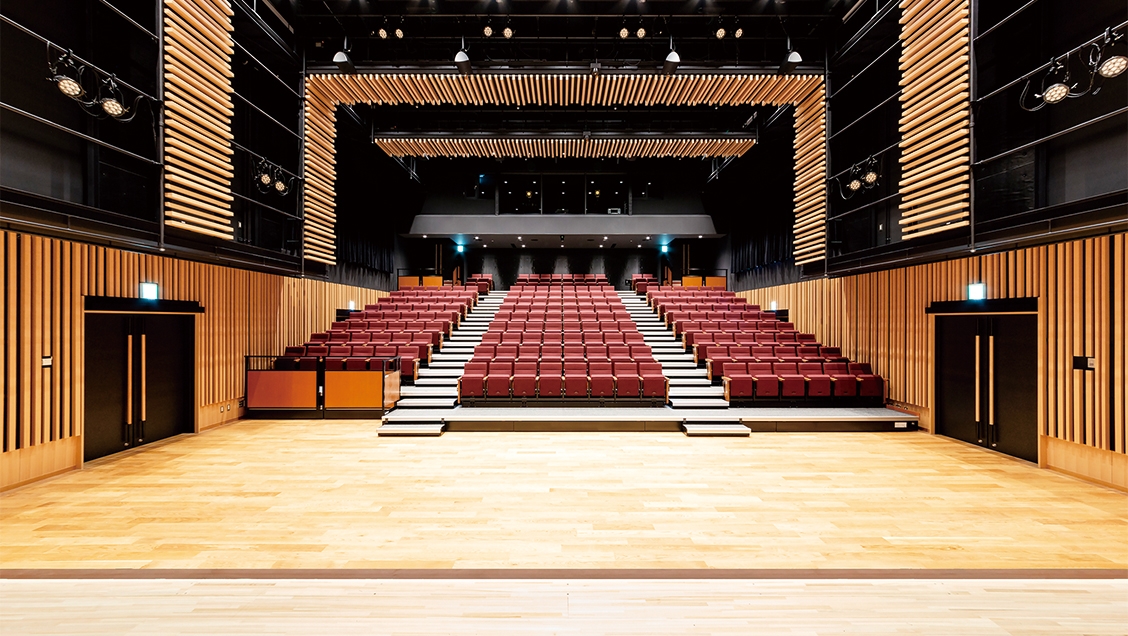 芸術文化体験棟では、アーティスト交流や幼児向けアートプログラム、ホールを活用した音楽、伝統芸能体験プログラムが実施され、ホールには収納可能な移動観覧席が設置されており、リサイタルやコンサート、講演を開催することもできます。