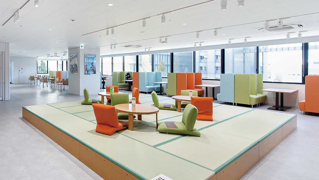 学生ラウンジ〈4〉/高床式ユニット畳:KS-NZM、座卓、ソファ、テーブル