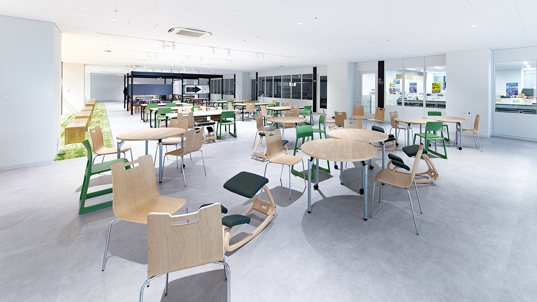 学生ラウンジ〈3〉/イス、バランスチェア:RF-VBL、テーブル:DTN、ベンチ