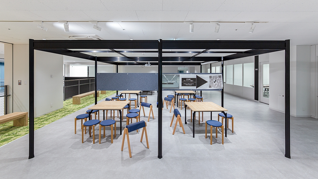 学生ラウンジ〈2〉/丸イス、スツール、テーブル:DTN、フレームシステム