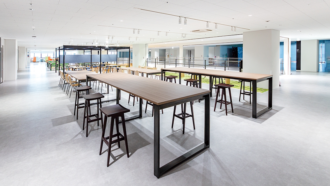 学生が自由に利用できるラウンジは、グループや個人で学習できるスペースや飲食できるスペースが設けられており、目的に合わせた使い方ができるゾーニングがなされています。