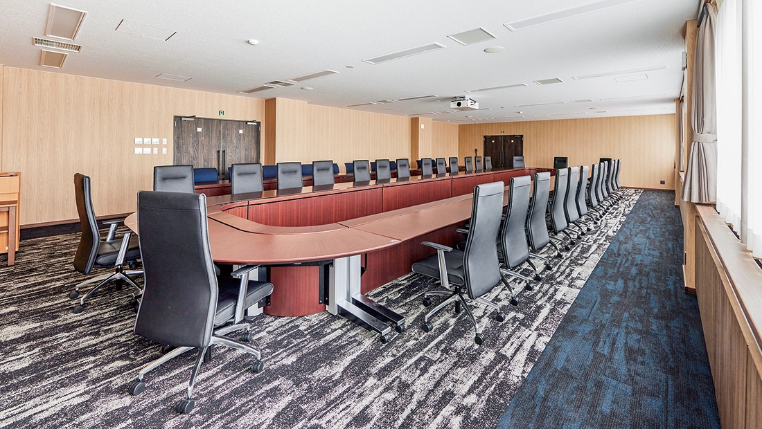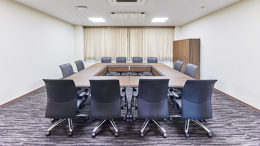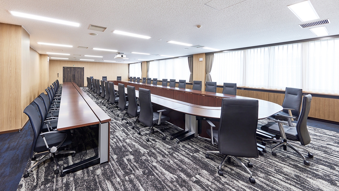 本部棟には役員室や事務室のほか、会議室が整備されています。会議室には可動式のイス・テーブルが採用されており、重厚感を持ちながらも、フレキシブルにレイアウトを変更することができます。