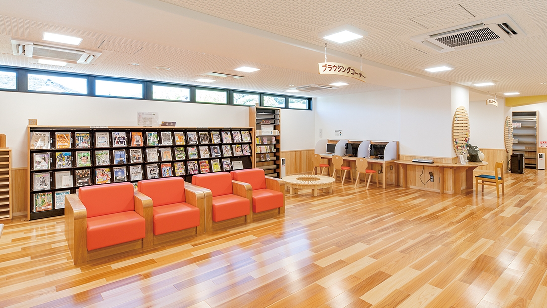 ブラウジングコーナー/イス、ソファ、ドーナツベンチ、キャレルデスク、書架、雑誌架、新聞架、掲示板