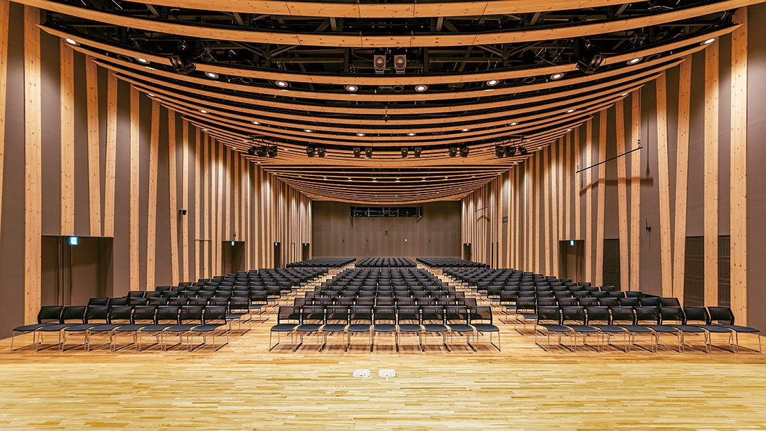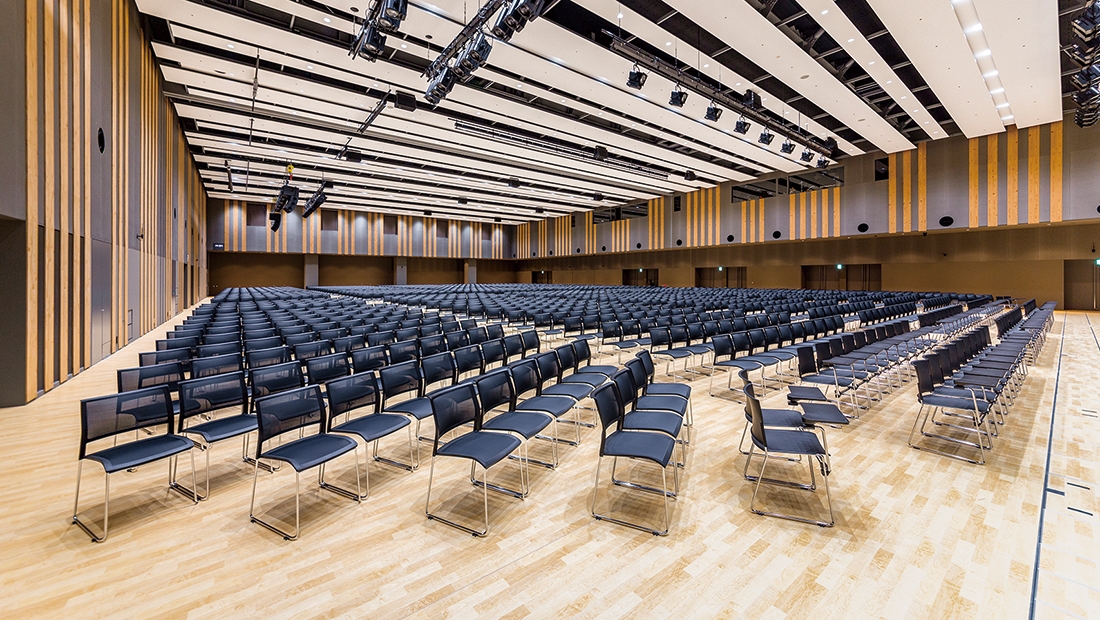 大ホールのほか、702人収容できる中ホール、300人収容できる大会議室や11室の小会議室を備えており、小規模な会議から大規模な学会まで、多様な用途の催事に利用することができます。交流拠点施設との一体利用が可能な交流広場「宮みらいライトヒル」や、飲食店やホテルが入る複合施設と隣接しており、地域の賑わいを創出する中心的な施設として期待されています。