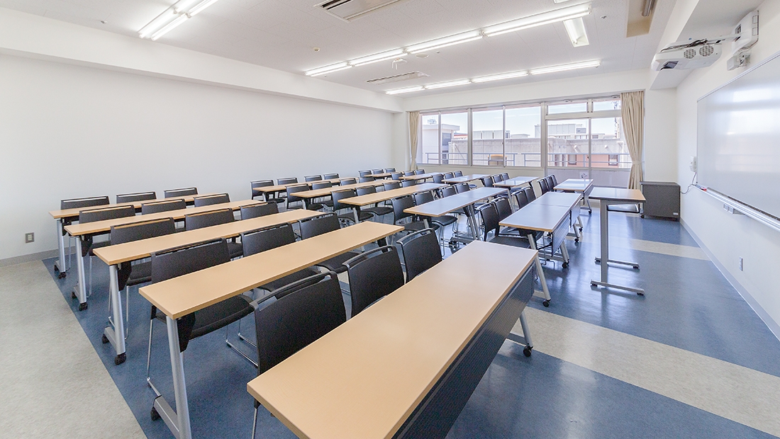 4階 中講義室/イス:ティーポ、テーブル:フリプト、教卓:S-30、内装改修(壁、床、建具塗装)