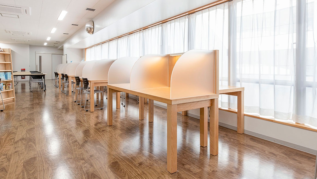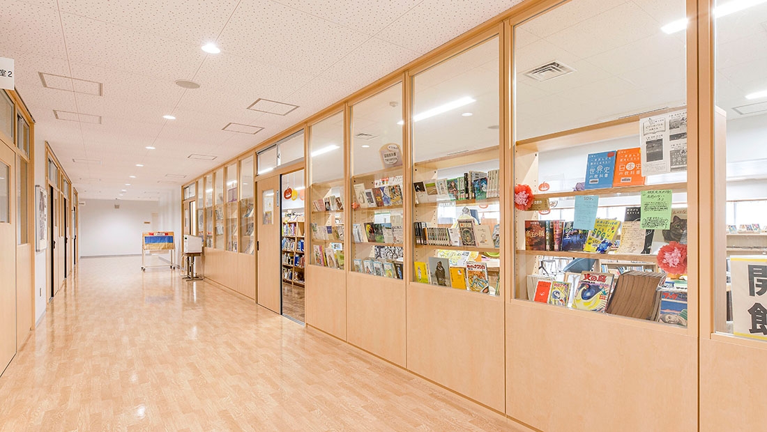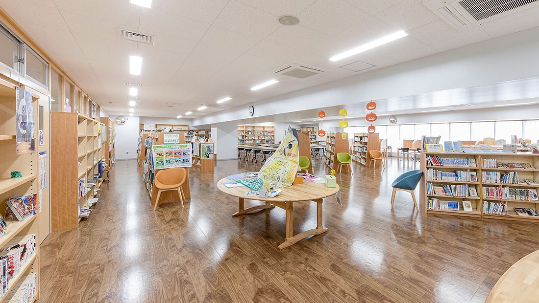 足立区は「足立区読書活動推進計画」に基づき、学校図書館の充実を図っており、新校舎の完成により一新された図書室は、計画の早い段階から現場の図書館支援員(司書)の意見が多く取り入れられました。配架計画を伴ったレイアウトプランを創り上げることで、使いやすく生徒が喜んで集まる図書室となっています。