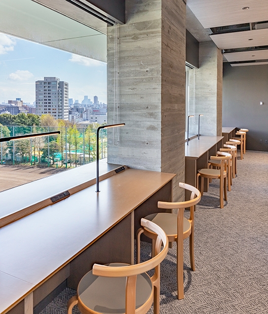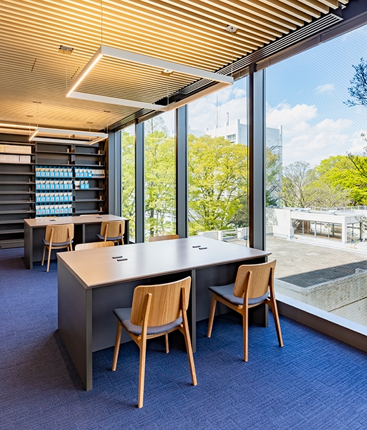 学習院大学では、研究棟として機能していた東1号館が耐震問題を抱えていたため建て替えを計画。新たに研究室のほか図書館などが設置された複合用途の校舎として、新東1号館が完成しました。新校舎は、コミュニケーションゾーン、図書館ゾーン、研究室ゾーンで構成されており、大学の理念を体現する新たな学びの拠点となります。