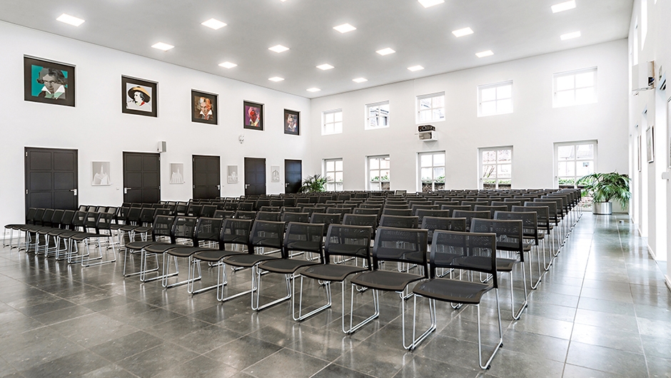 UNIVERSITY CLUB BONNは、ドイツを代表する大学の一つである、ボン大学の訪問者用の宿泊施設として建設され、イベントなどにも利用されている施設です。ホール内や各部屋にはゆかりのある学者の名前が付けられ、ホールの名称にはボン大学で教授をしていた、ノーベル物理学賞の受賞者であるヴォルフガング・パウルの名前が付けられています。以前は木製チェアを使用していましたが、イベントやパーティなどレイアウト変更の頻度が高いため、快適さを維持しながらも軽量かつ収納性が高いスタッキングチェアが採用されました。