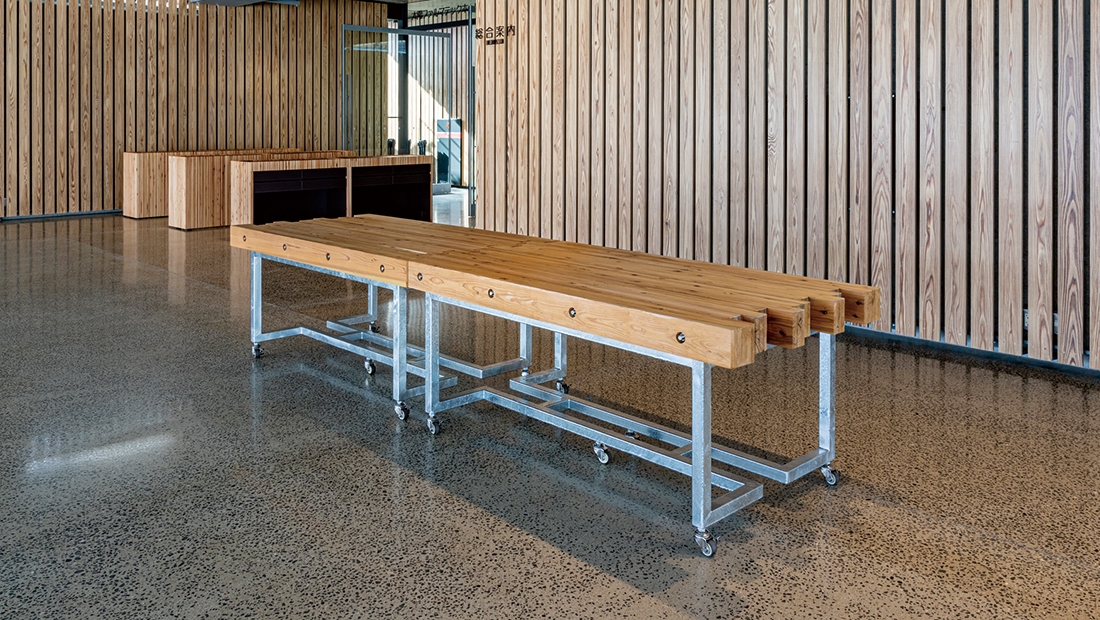 地下1階 アーティストラウンジ/イス:特注品、テーブル:特注品、カウンター:特注品、壁面ホワイトボード