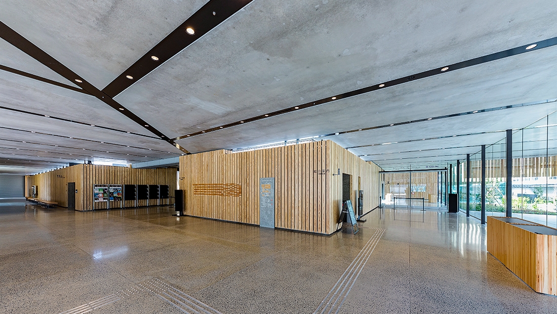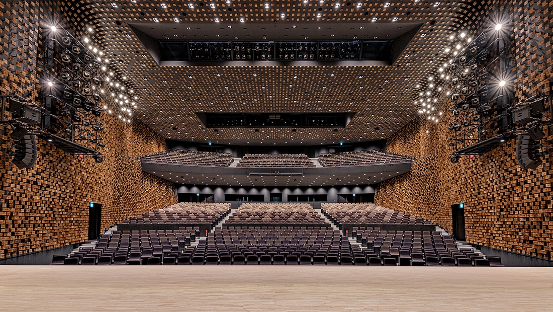 1,505席の大ホール「トリシマホール」は、プロの公演にも対応できる高機能ホールで、スギ材のキューブを張り巡らせた迫力ある壁面、デザインだけでなく音響面でも高い効果を発揮する設計となっており、歌舞伎、ミュージカル、バレエなど本格的な催しが開催することができます。
