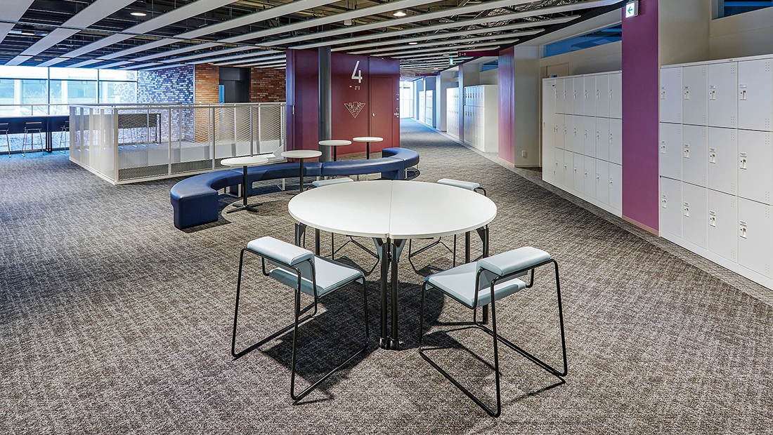 4階 共用スペース/イス:チャット、テーブル:DTN、丸テーブル、ベンチ:ステップ