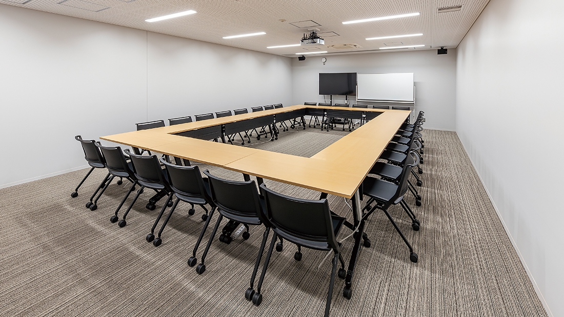 1階 会議室/イス:ティーポ、テーブル:CTZ、ホワイトボード