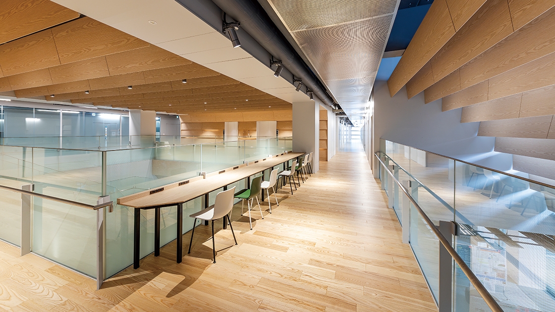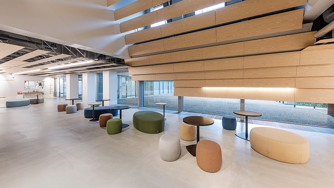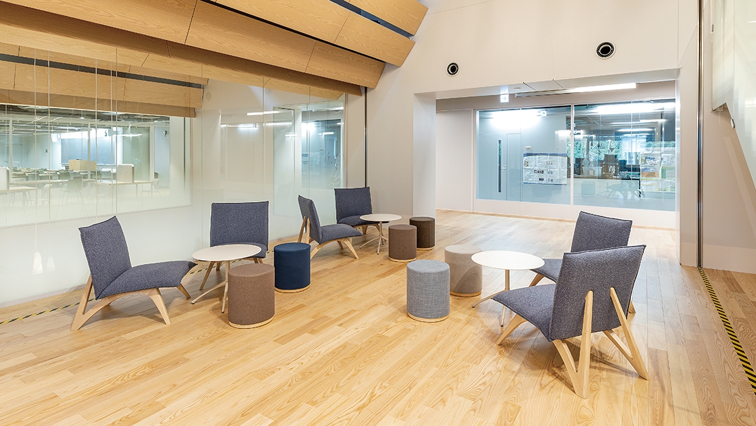 中心となる「ハブ・セントラル(Hub Central)」は各所にソファ、イス、テーブルが設置され、授業や研究の合間に学生・教員の憩いの場となるカフェや、グループワークや展示などができるオープンスペースを併せ持った空間となっています。
