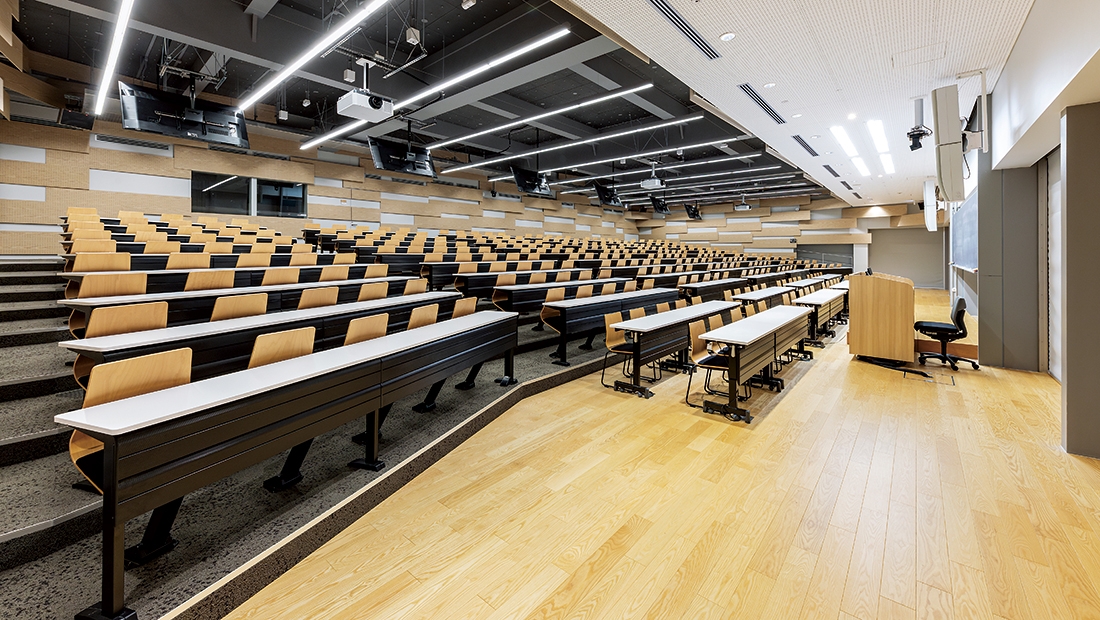 4階建ての建物には、これまで理学館にあった自然科学系の研究室と実験室などの設備・機能の全てと、人文・社会科学系の5つの研究所、事務部署の一部が移転。新たに300人が収容できる大教室と、180人規模の大教室が4室設置され、あらゆる学生の活動が新校舎で展開されます。
