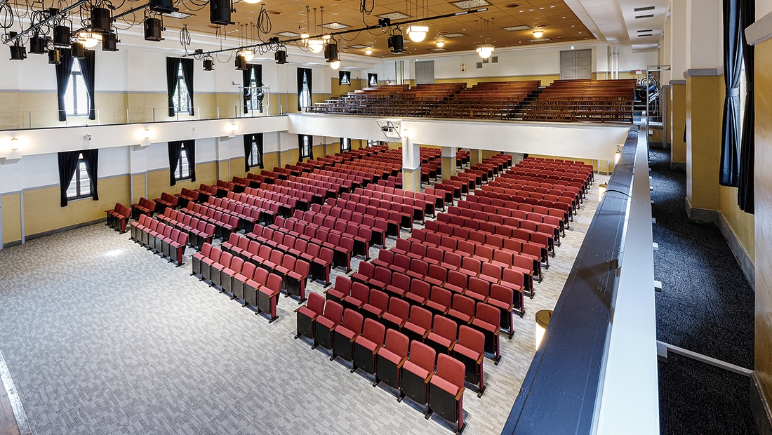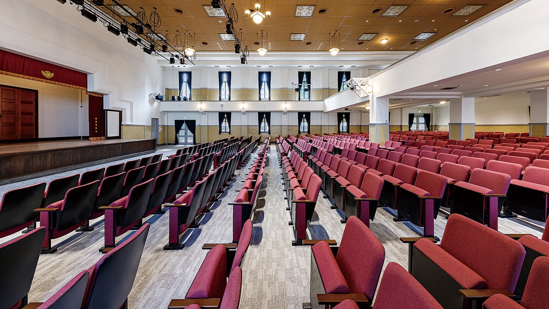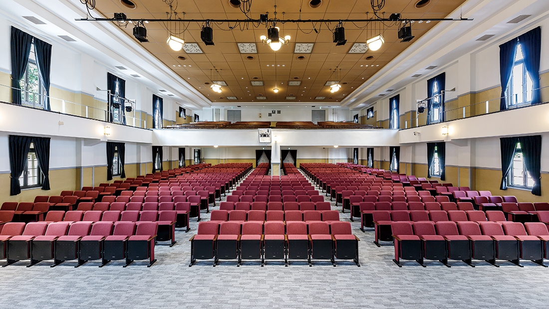 1933年に建てられ講堂は登録有形文化財に登録されており、入学式や卒業式など、さまざまな学年行事に利用されています。改修にあたっては、音響、照明など最新の設備が取り入れられながらも、内装や客席には創建当時の面影を残す工夫が施されています。